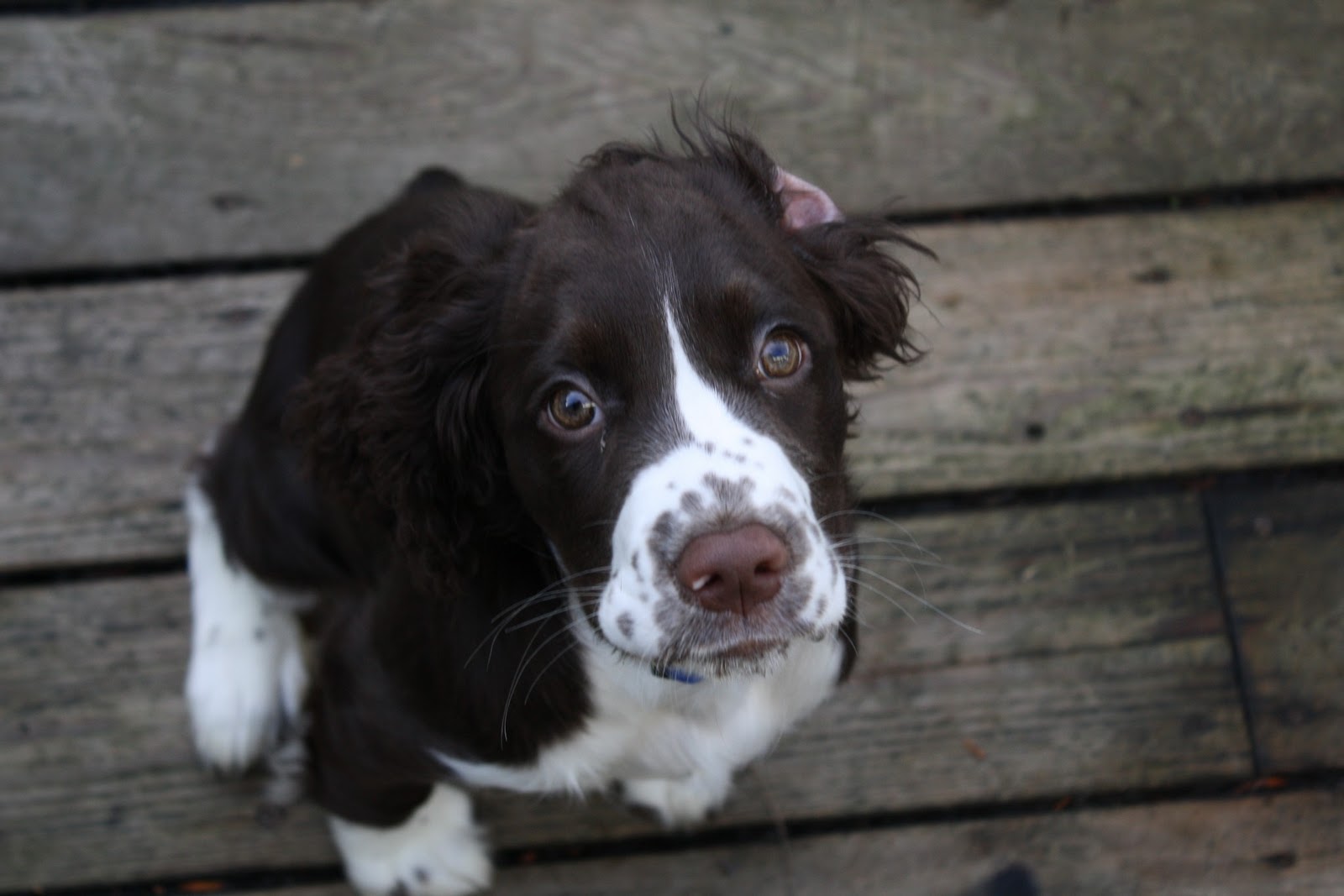 And play sessions are a great time to practice her name recognition. If she doesn't respond to me by looking at me when I call her name, I'm not going to repeat her name. I simply walk up to her and wiggle a treat under her nose and lure it up to my eye. She's still learning to do this in distracting environments so I want to make sure that I always follow through with her so she doesn't learn to blow me off.